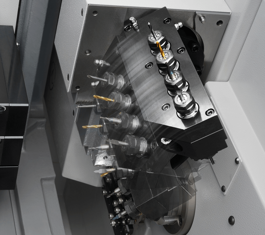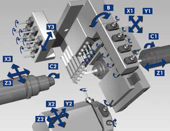 Ana Gang üzerinde yer alan B Eksen ve Arka Gang üzerinde yer alan Y2 Ekseni sayesinde ( (M16-VIII) çok takımlı ve çok yönlü işleme imkanı sağlanmıştır. Karmaşık şekilli parçaların işlenmesi yüksek adetteki takım bağlanabilmesi sayesinde artık çok kolaylaşmıştır.