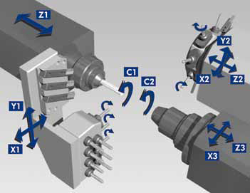 Çift Ayna, Tek Taret, 2 adet Y Eksen, Gang Ünite ve karşı aynada X3 Ekseni ile BNA42GTY modeline toplamda 45 takım bağlanabilmektedir