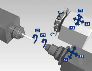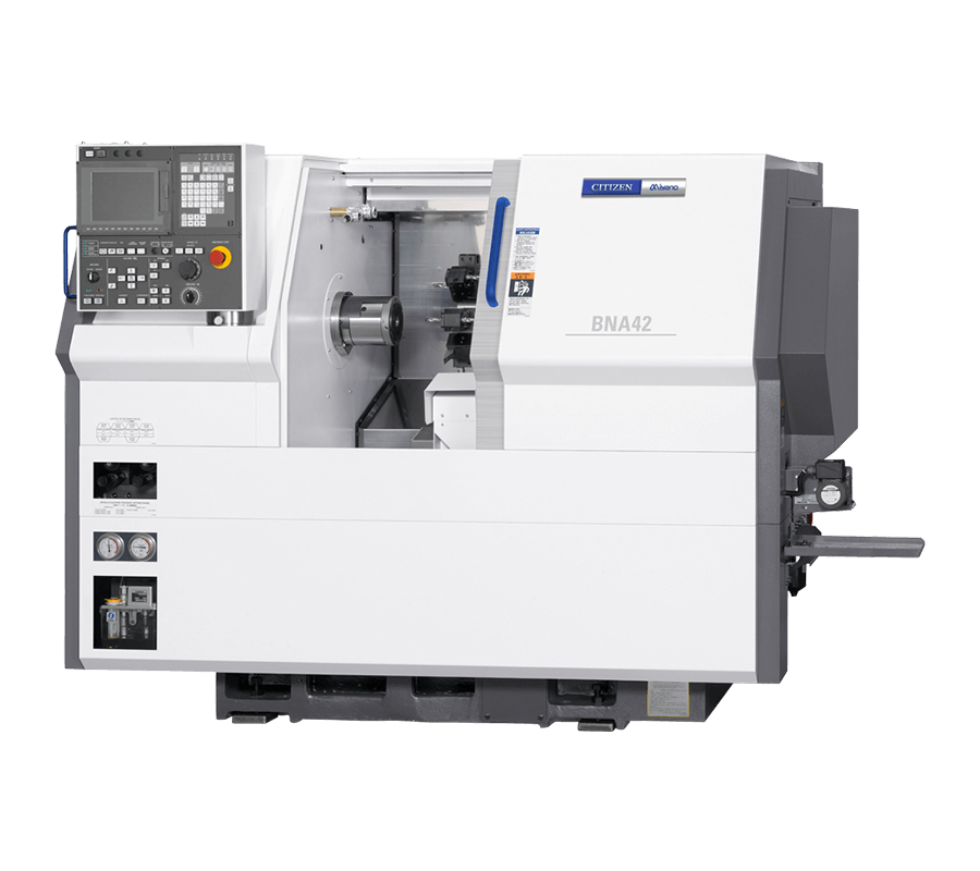 Arka operasyon çalışma özelliği ile (Karşı Ayna ) 42mm çubuk çalışabilen Y Eksenli hassas otomat torna tezgahı BNA-42MSY. Taret in yarım tur özelliği sayesinde 16 pozisyonda indeksleme yeteneği mevcuttur. Bu sayede bağlanabilen takım adedi arttırılabilmektedir. 2.8kW 6.000devir Canlı Takım motoru sayesinde C Eksen operasyonları (Freze/Delik/Kılavuz vs) güçlü bir şekilde yapılabilmektedir. Y Eksen kontrolü ile kompleks parçalar kolaylıkla üretilebilmektedir. X2 Ekseni ve Superimposition ( Takip Fonksiyonu ) özelliği ile çift taret gibi çalıştırabilme özelliği mevcuttur. Simetrik parçalarda taret ana aynada çalışırken aynı anda arka takımlarla karşı aynada işlem yapılabilmektedir. Yeni nesi Mitsubishi kontrol ünitesi sayesinde boş zamanlar en düşük seviyeye çekilmiştir. El raspası sürtünme kızakları sayesinde uzun takım ömürleri ve mükemmel yüzey hassasiyetlerine ulaşılabilmektedir.