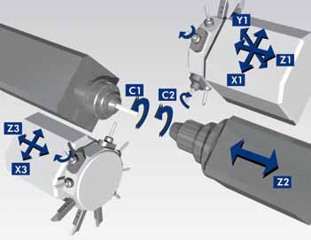hidrolik sıkma basıncı , sağlam kutu tipi kızaklar sayesinde yüksek hassasiyet ve uzun ömründen ödün vermeyen taret sistemi her istasyona (12 istasyon ) 20Nm tork a sahip canlı takım bağlanabilmesine imkan vermektedir. Çift pimle oturma özelliğine sahip benzersiz takım tutucular kolayca yerine takılır ve çıkarılır. Her bağlama da hassas oturma pozisyonu sağlanır. Yeni 31i-B NC Ünitesi daha az düğmeye gerek duyarak operasyon panelini sadeleştirmiş ve ‘Machining Data’ , ‘Start Condition’ , ‘Tool Monitor’ (opsiyon) gibi yardımcı programlarla hızlı ayar yapılmasını ve yüksek verimliliği sağlamıştır.